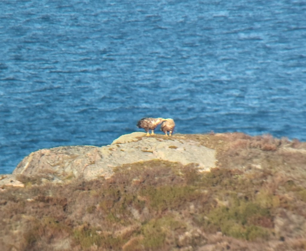 Linnuston kohokohtia olivat kärjen yli äännellen lentänyt keltahemppo sekä kaukana merellä itään mennyt allihaahka parvi. Parvi meni varsin kaukaa, mutta näytti sisältäneen ainakin 13 koirasta ja 3 naarasta. Osa naaraista saattoi tosin jäädä etäisyyden vuoksi näkemättä. Koiraat kun hohtavat valkeina ja naaraat jäävät tummina hieman pimentoon. Allihaahkat saattoivat laskeutua Träskön länsipuolelle. Ainakin kun lensivät Segelkobben nimisen saaren taakse, eivät tulleet enää toiselta puolelta esiin. Merellä meni myös jonkin verran mustalintuja, pilkkasiipiä sekä valkoposkihanhia, eli arktika on jo kunnolla käynnissä!